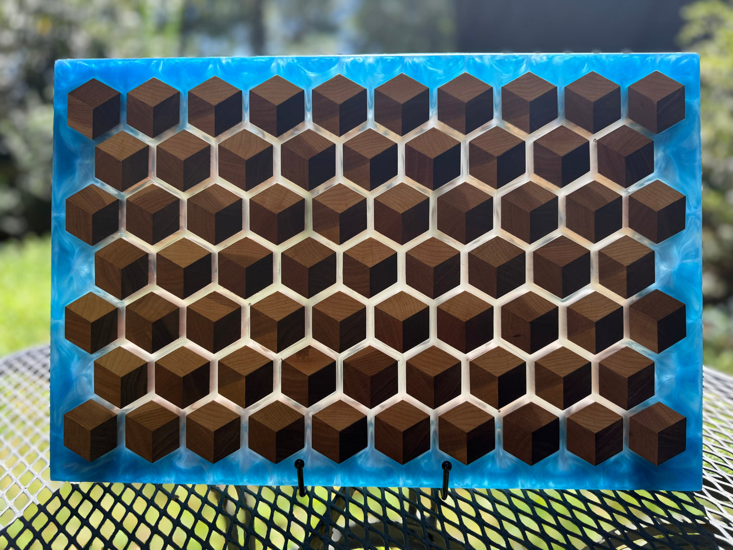 Inspired by Nature's Geometry. A collection of handcrafted woodwork featuring intricate honeycomb patterns, blending natural beauty with timeless design.