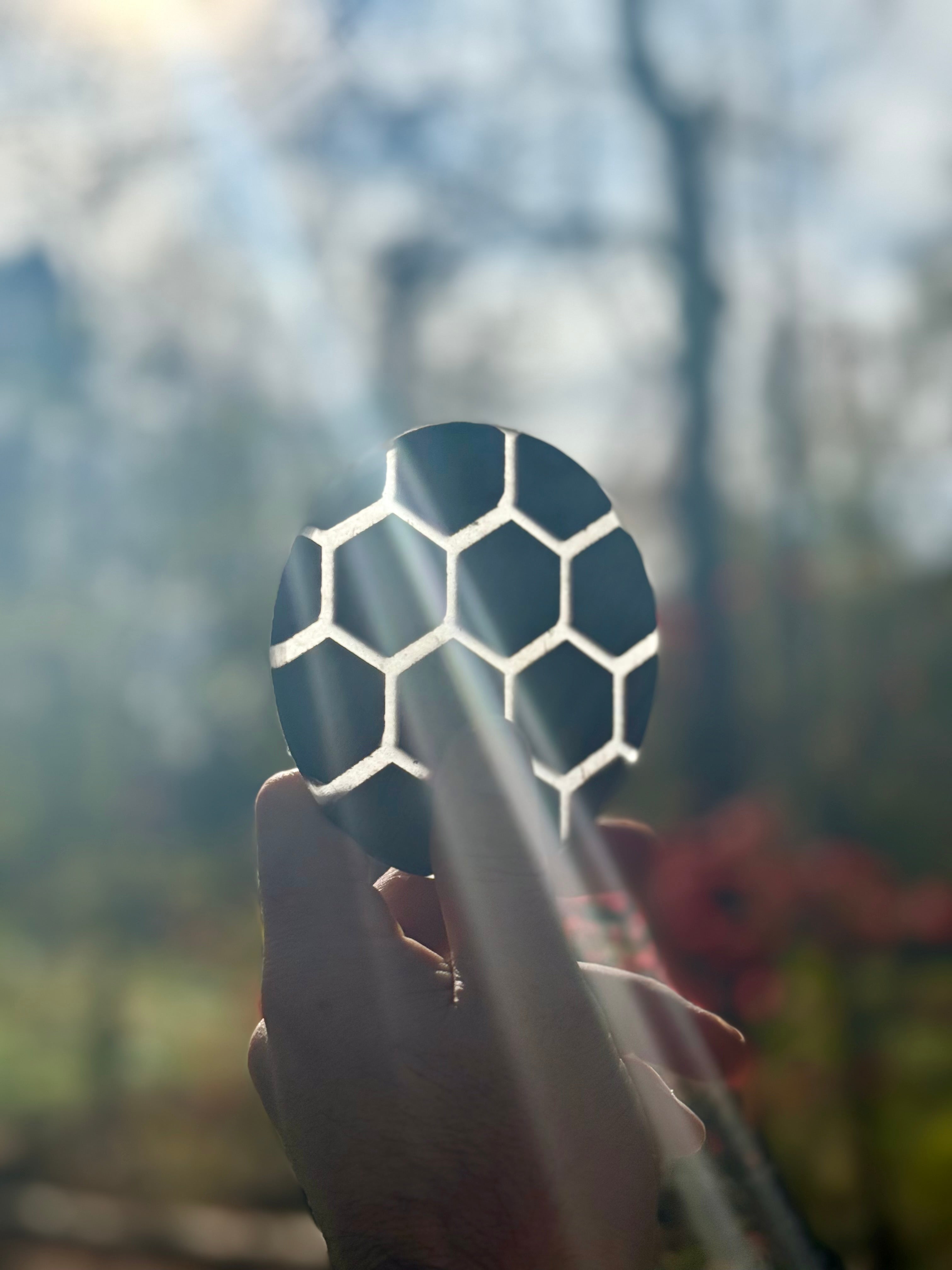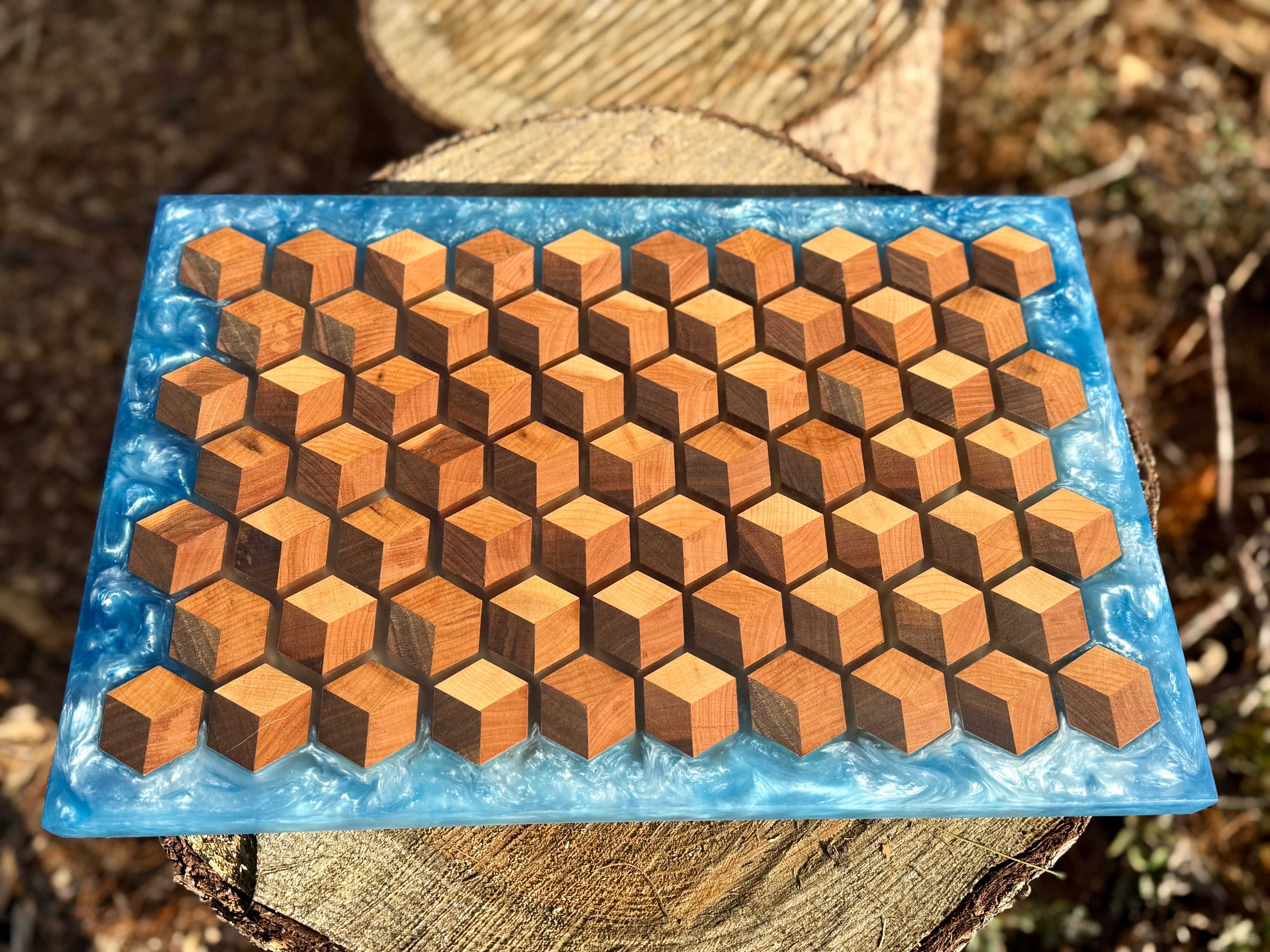 Inspired by Nature's Geometry. A collection of handcrafted woodwork featuring intricate honeycomb patterns, blending natural beauty with timeless design.
