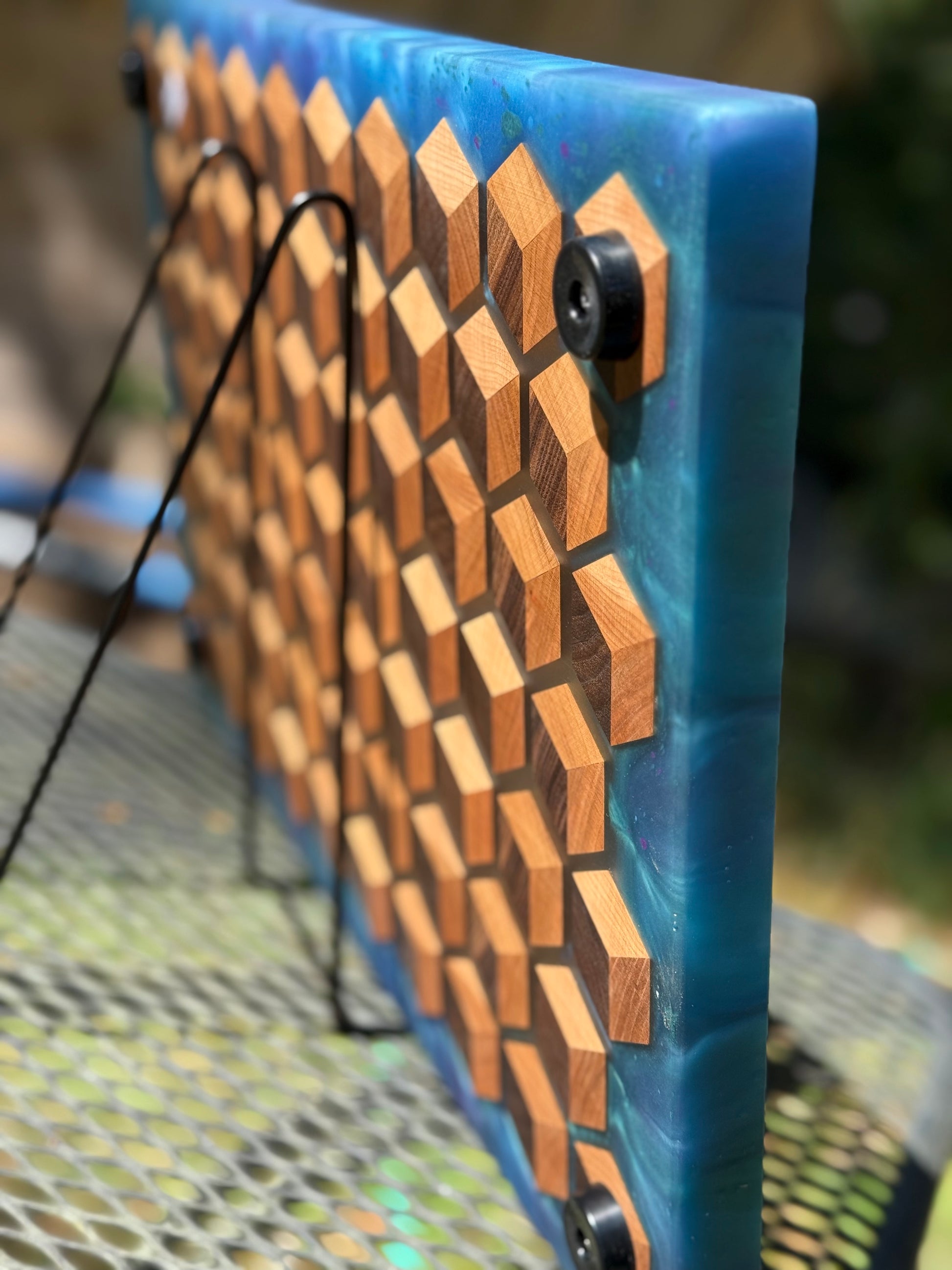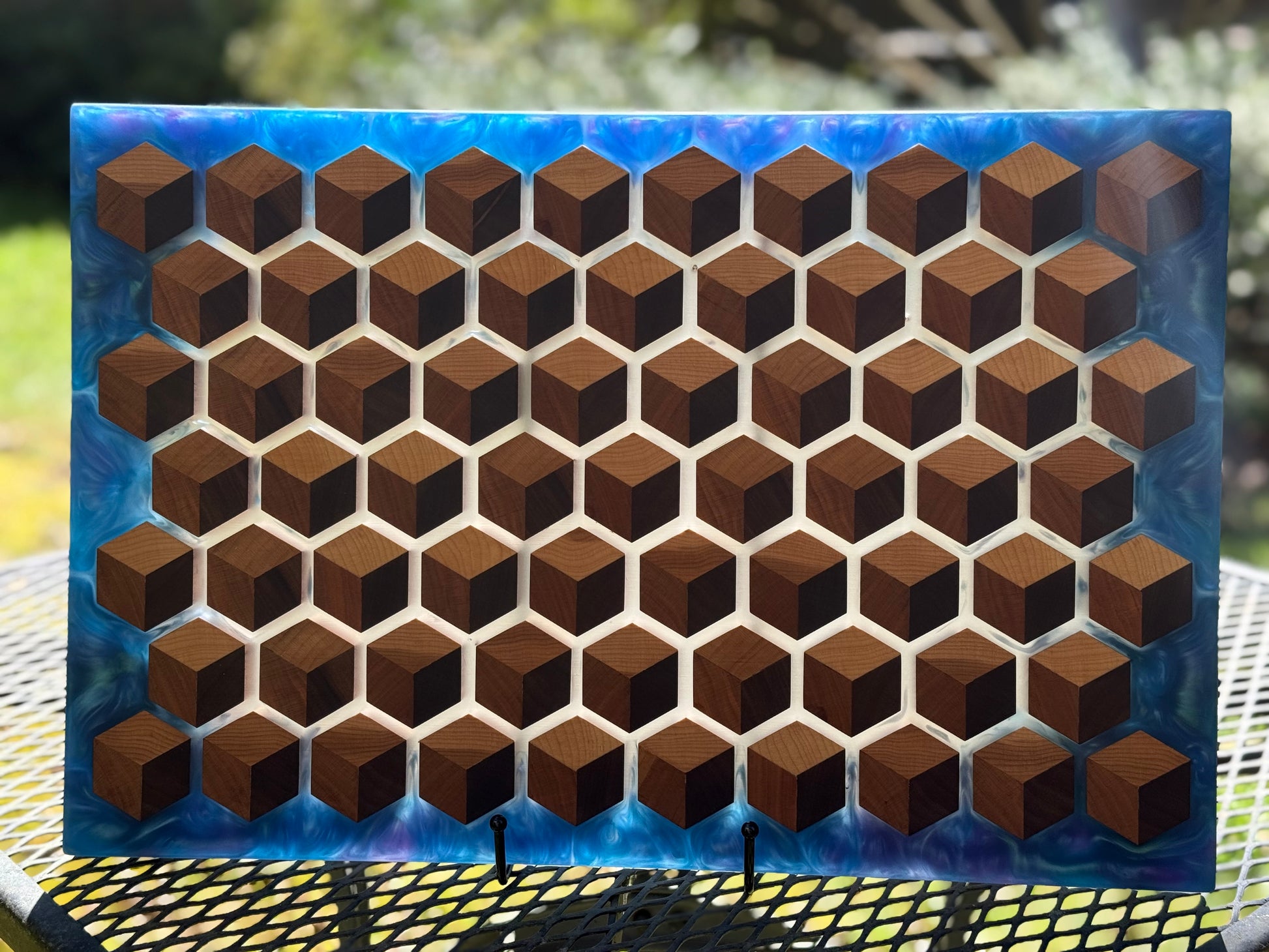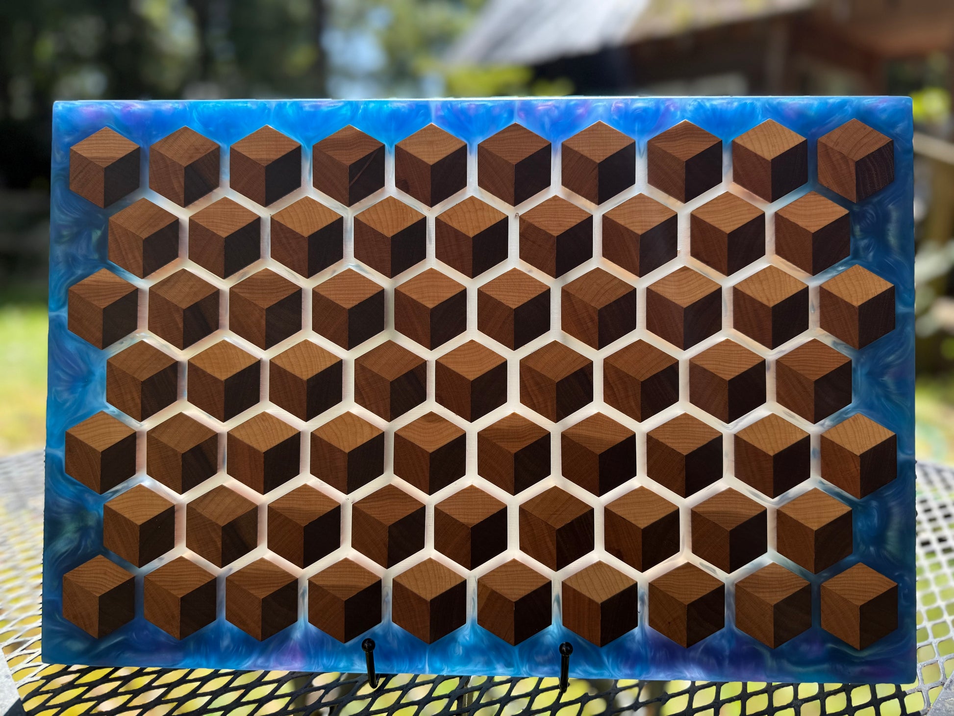 Handcrafted with care and inspired by natures geometry, the HoneyCubed Board is a testament to the artistry of fine woodworking and resin craftsmanship. A stunning centerpiece for any home or occasion.